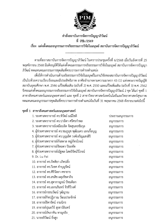 คำสั่งแต่งตั้งคณะอนุกรรมการฯ ชุดที่ 1 สายสังคมศาสตร์
