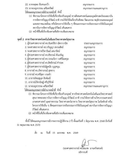 คำสั่งแต่งตั้งคณะอนุกรรมการฯ ชุดที่ 2 สายวิทยาศาสตร์และเทคโนโลยี